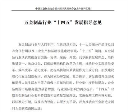 《中国五金制品行业“十四五”发展指导意见》发布